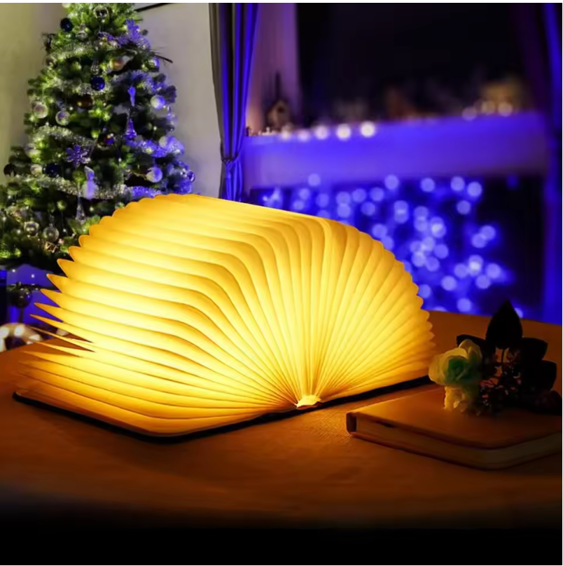 - Einzigartiges Design: Das Lampengehäuse erinnert an ein klassisches Buch, während die „Seiten“ aus einem reißfesten Material bestehen, das beim Öffnen sanft leuchtet.