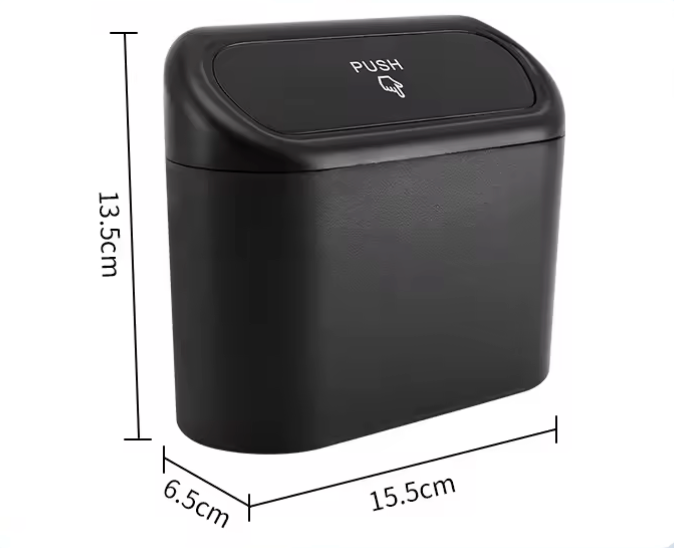 Der Deckel mit "Push"-Mechanismus ermöglicht eine einfache und hygienische Entsorgung, während das stilvolle schwarze Design nahtlos in jede Fahrzeug-Innenausstattung passt. Gefertigt aus robustem und leicht zu reinigendem Material, ist dieser Mülleimer langlebig und pflegeleicht – ein Must-have für jeden Autofahrer!