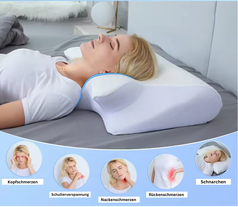 Schlafe entspannt und schmerzfrei mit unserem ergonomischen Nackenkissen, das speziell dafür entwickelt wurde, deine Nackenschmerzen zu lindern und eine optimale Schlafposition zu fördern. Dank seines durchdachten Designs und der hochwertigen Materialien wird jede Nacht zum regenerativen Erlebnis.